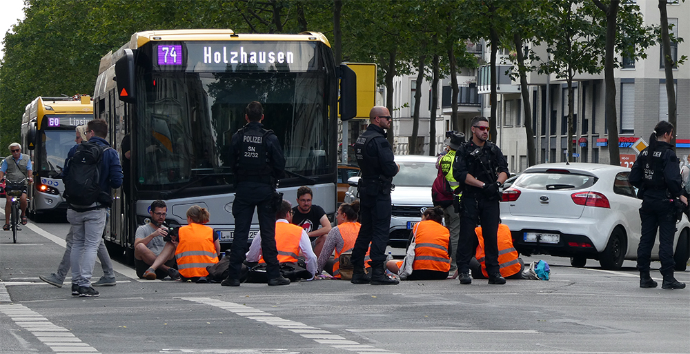 Fotos von einer Straßenblockade in Leipzig, Anfang Juli: Pit Wuhrer