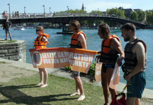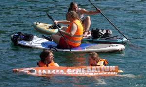 Andererseits war abzusehen, dass die Aktivist:innen nicht einfach klein beigeben und ihren Protest abblasen würden. Nachdem ein Einspruch gegen die Allgemeinverfügung nichts bewirkt habe, wie es später hieß, sei man auf eine andere Idee gekommen – die einer „schwimmenden Spontanversammlung, um trotzdem darauf aufmerksam machen zu können, dass die Klimakrise und die Untätigkeit der Regierung dagegen akuter ist denn je“. So formulierte es die Letzte Generation in einer Pressemitteilung.