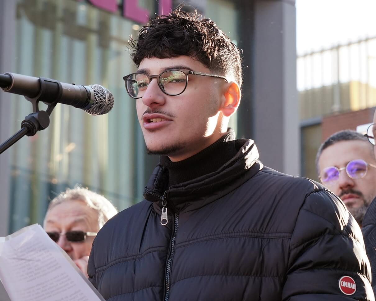 Guiseppe Femia vom Jugendkomitee Singen: „Heute appelliere ich an alle Jugendlichen da draußen, lasst euch nicht einschüchtern, seid mutig und kämpft für eure Zukunft, denn ihr seid am Ende diejenigen, die das tragen müsst, wenn eine antidemokratische und diskriminierende Politik unsere Leben beeinflusst.“
