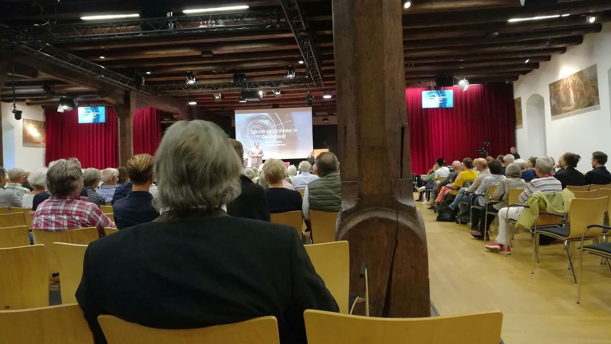 Genau so war es denn auch, wie sich vorgestern in einer zumeist kurzweiligen Diskussion herausstellte, die der Freundeskreis Philharmonie e.V. organisiert hatte. Das Ergebnis, so viel sei für Ungeduldige vorweg verraten, war eindeutig: Nicht nur das Konstanzer Orchester, ebenso wie das hiesige Theater von einer 20%igen Mittelkürzung bedroht, liegt in Todesbanden. Nein, Orchester in ganz Deutschland werden von ahnungslosen Politiker*innen kaputtgespart. Genau damit aber kratzen sie den letzten Kitt, der diese morsche Gesellschaft noch zusammenhält, aus den Fugen des bröckelnden Staatsgebäudes – zumindest wenn man den Diskutierenden auf der Bühne des bestens besuchten großen Konzilsaals Glauben schenken will.